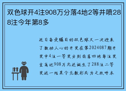 双色球开4注908万分落4地2等井喷288注今年第8多