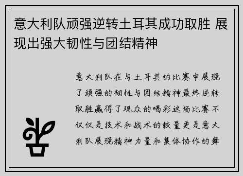 意大利队顽强逆转土耳其成功取胜 展现出强大韧性与团结精神