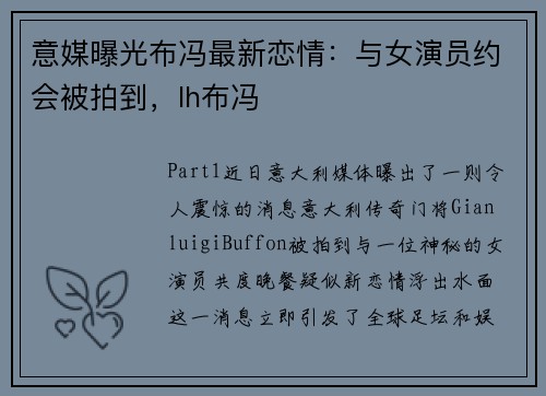 GianluigiBuffon,这位在足坛驰骋超过20年的传奇门将,素来以稳健的发挥和低调的生活方式闻名。鲜为人知的是,布冯的个人生活一直以来都备受外界关注。无论是他的感情经历,还是他在场外的社交动态,都成为媒体追逐的焦点。如今,随着他与一位女演员的秘密会面被曝光,布冯的最新感情动向再次成为热议话题。